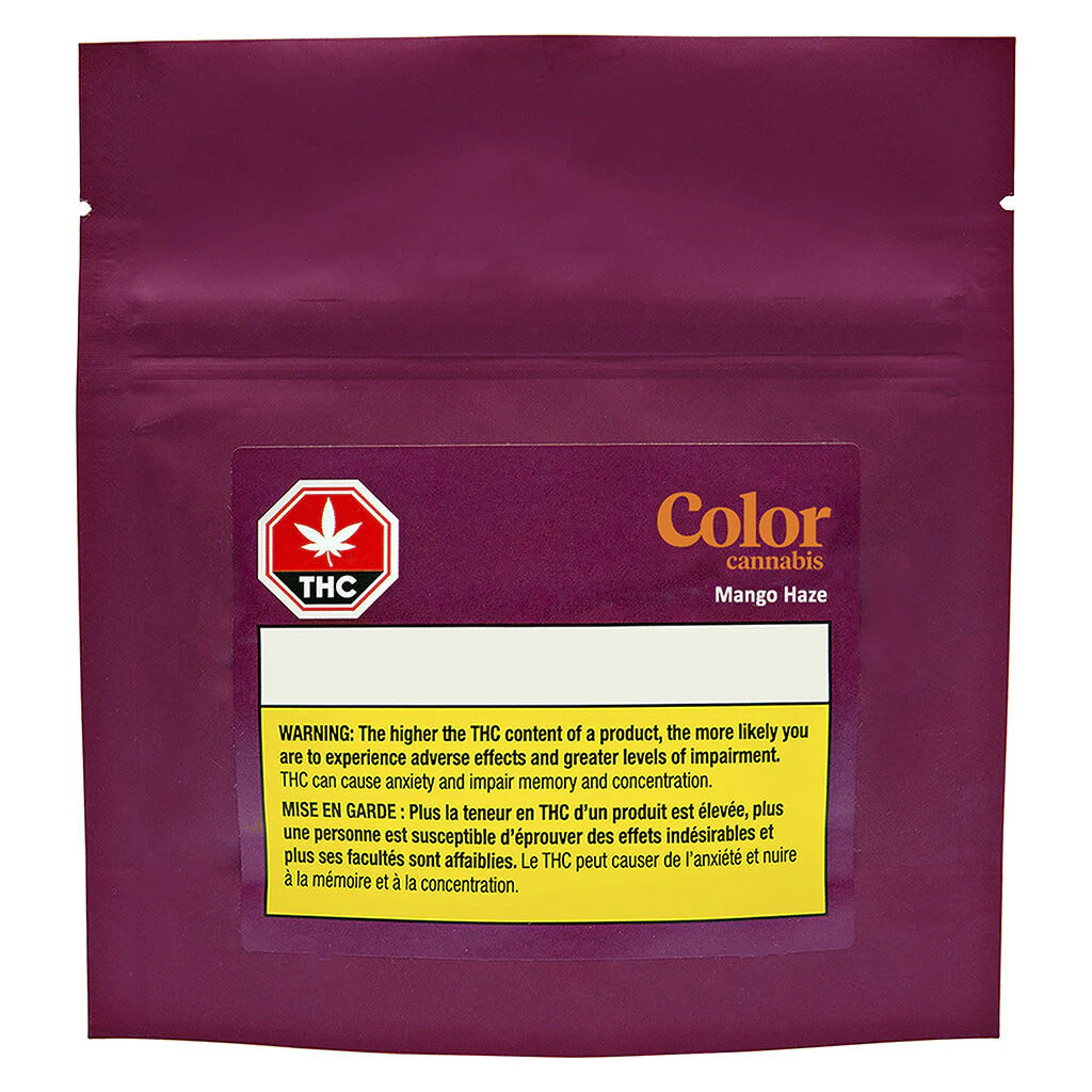 Color Mango Haze Pre-Rolls are perfectly packed with gently milled flower, not trim or shake, to ensure each pre-roll contains the freshest and most flavourful cannabis possible. A balanced CBD/THC cultivar that is rich in flavour, its bountiful terpenes of p-cymene, myrcene, pinene, and beta-caryophyllene give this cultivar its signature mango scent. Mango Haze is a sativa-dominant hybrid that produces a mild THC potency potential with genetic cross between Northern Lights, Skunk, and Haze. Our Color Cannabis Pre-Rolls use flower that have been harvested with care, dried naturally, gently milled and then packed into the perfect size pre-roll. Each unit comes with single session size pre-rolls, weighing 0.35g each now available in a convenient 10 pack size.